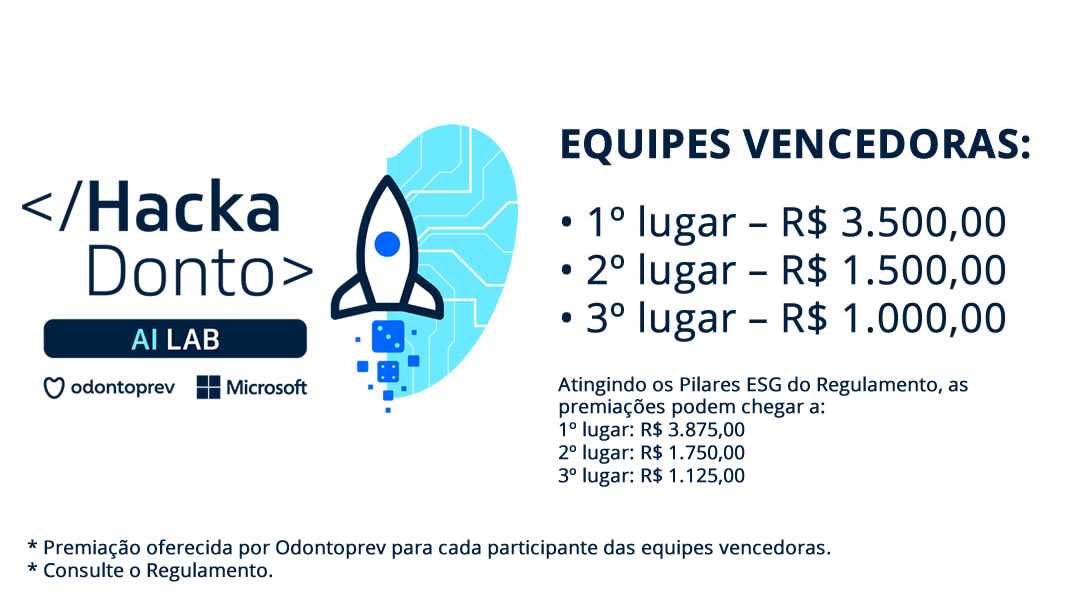 O HACKADONTO AI LAB 2026 será realizado em 03 dias (22 a 24 de Abril de 2026) a partir das 8:30h. Serão 08 equipes com 04 participantes cada, selecionados através das inscrições disponíveis no site oficial do evento. A Odontoprev irá custear passagens e custos de hospedagem para participantes de outras localidades.